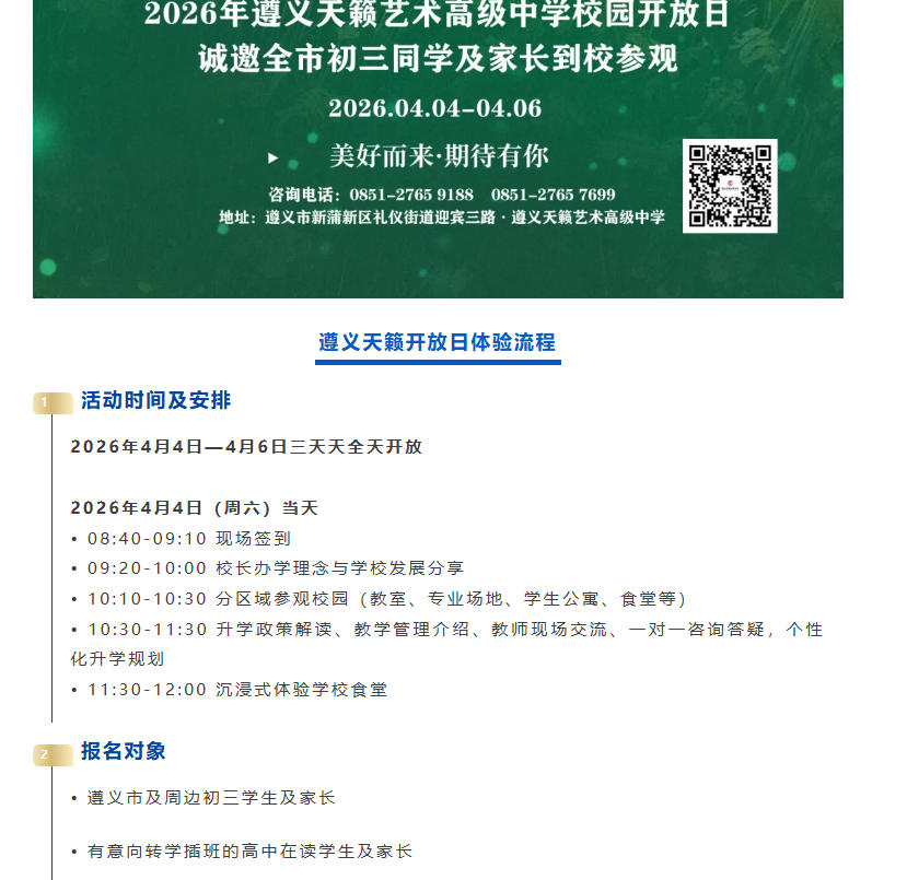 探秘黔北特色高中|遵义天籁艺术高中开放日 重磅预约!