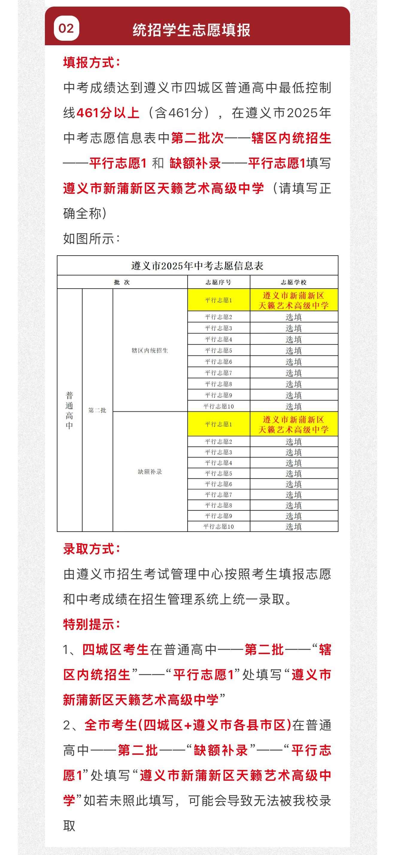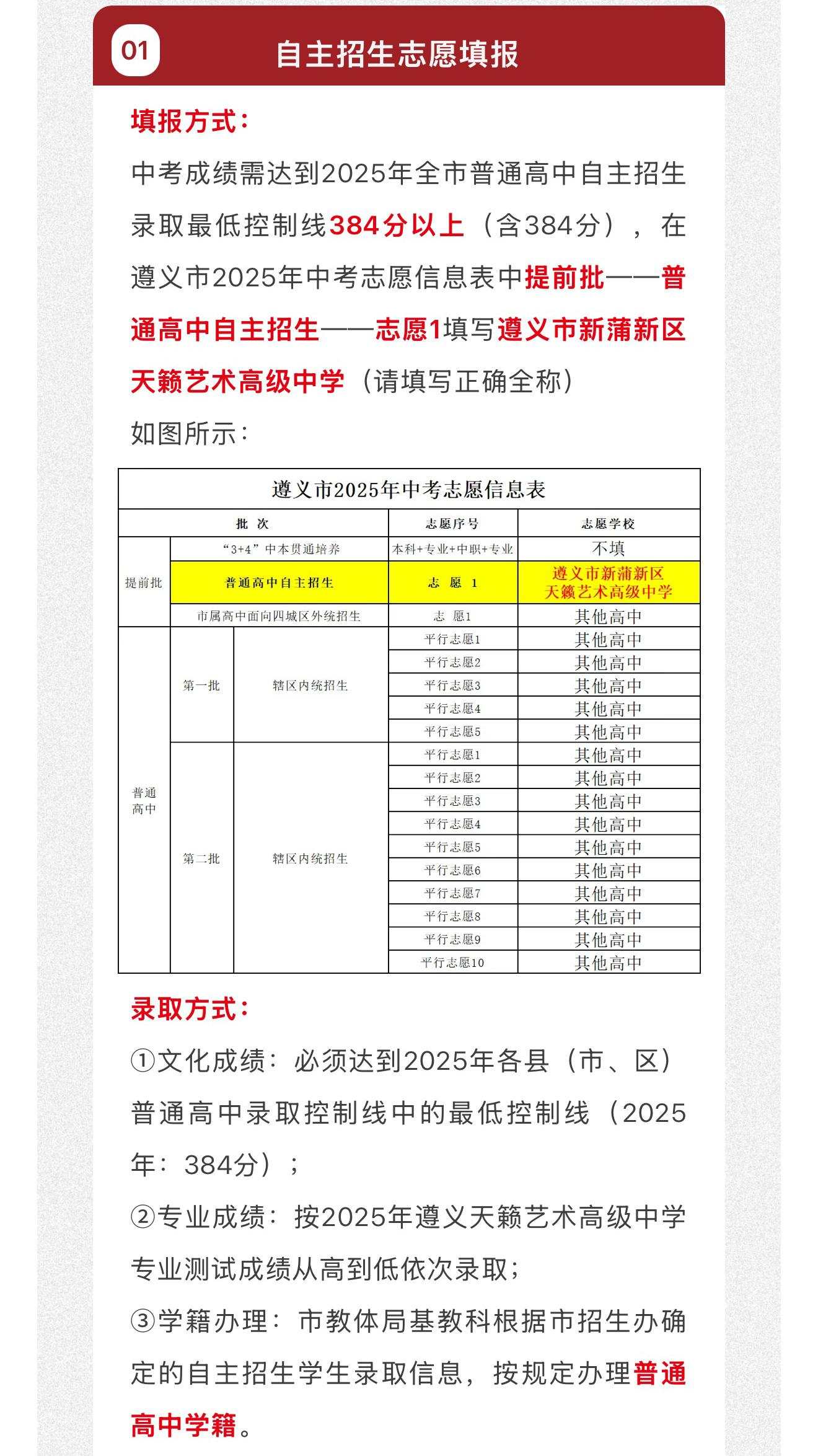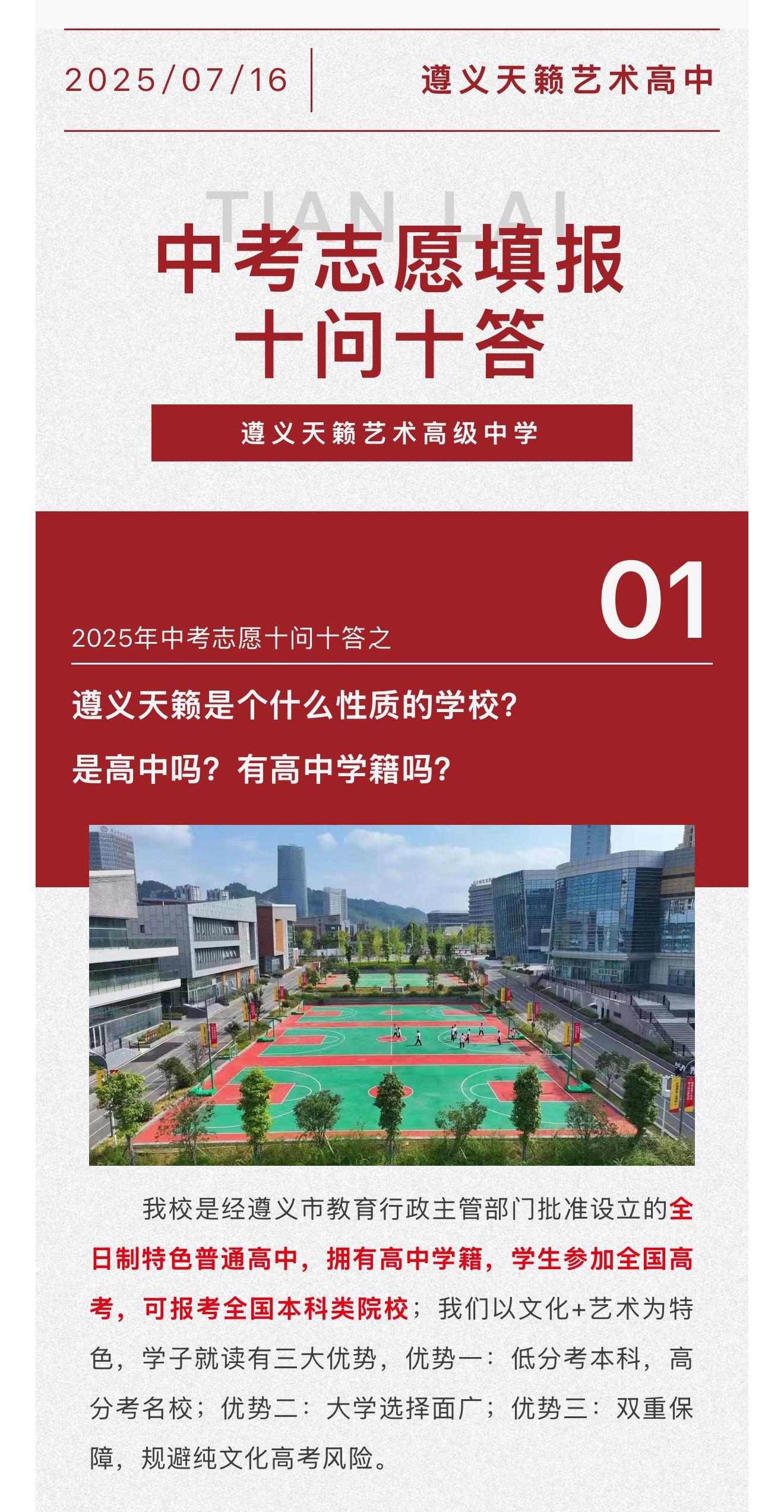 中考志愿填报指南 | 遵义天籁艺术高级中学2025年中考志愿填报问答