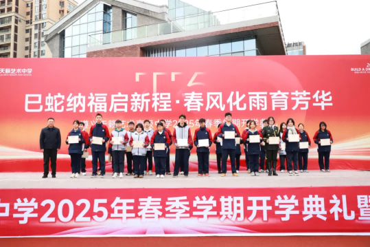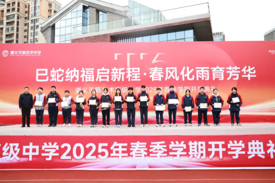 2月17日上午,遵义天籁艺术高级中学2025年春季学期开学典礼在校园操场隆重举行。