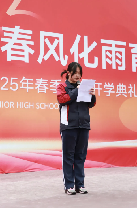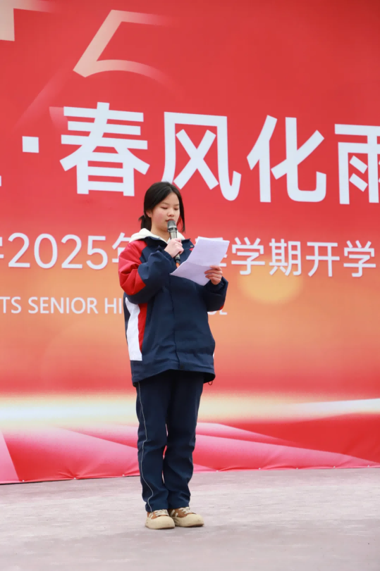 高三2班秦晨曦、高一1班潘炯桥同学作为学生代表发言,鼓励大家以高昂斗志追梦前行,脚踏实地,勤奋探索,不负青春韶华。
