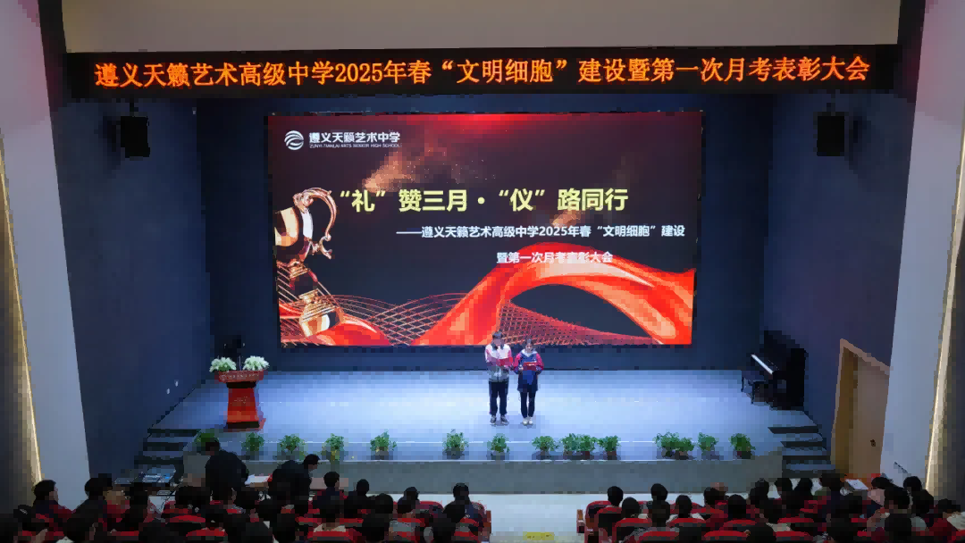 在这生机勃勃的春季,遵义天籁艺术高级中学以“‘礼’赞三月·‘仪’路同行”为主题,开展了丰富多彩的“文明细胞”建设活动。3月31日晚,学校隆重举行了表彰大会。