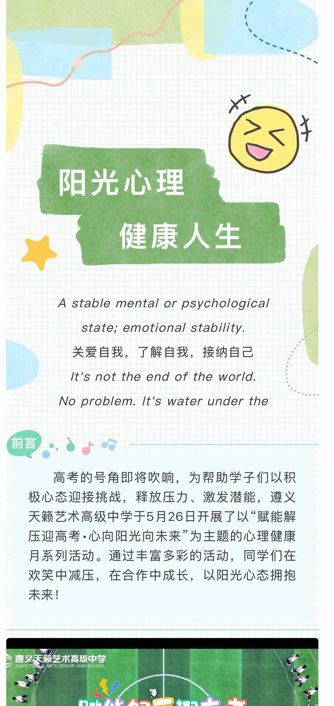 赋能解压迎高考 心向阳光向未来——遵义天籁艺术高级中学心理健康月系列活动