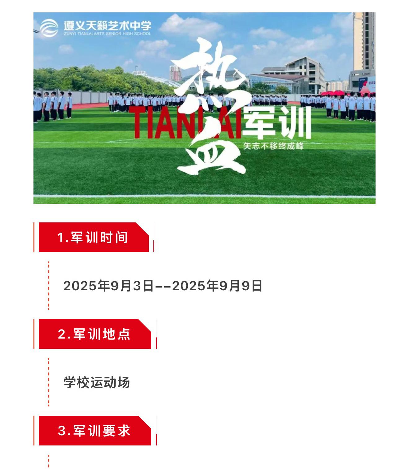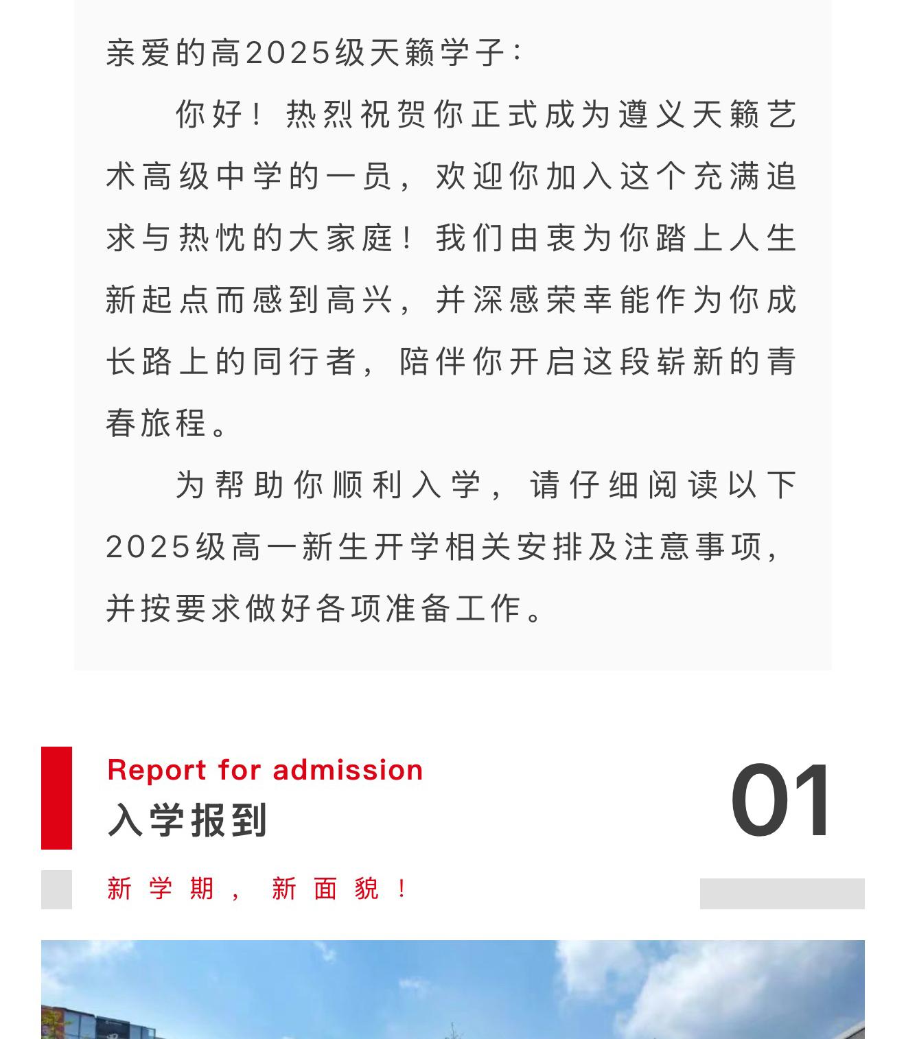 开学须知 | 遵义天籁艺术高级中学2025年秋季学期高一新生开学须知