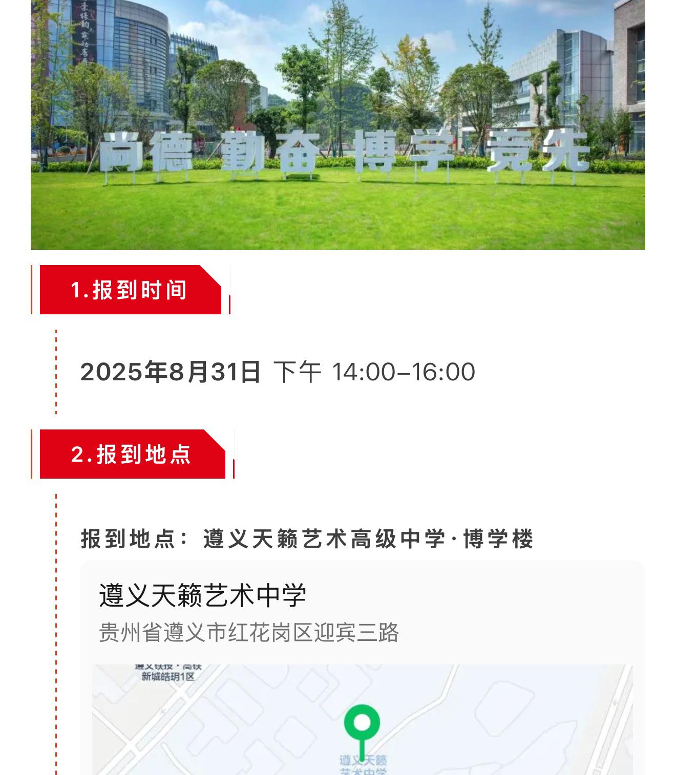 报到注册 | 遵义天籁艺术高级中学高2025级新生报到注册须知