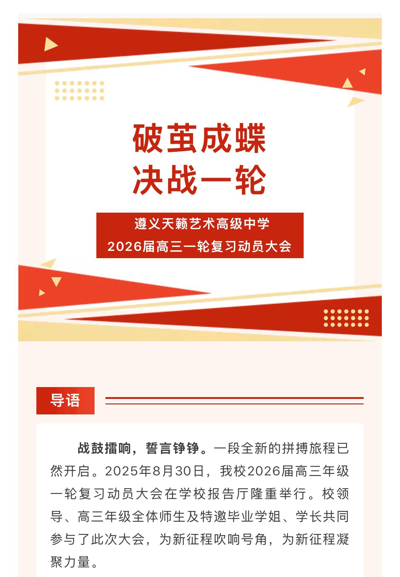 破茧成蝶 · 决战一轮 | 遵义天籁艺术高级中学2026届高三一轮复习动员大会