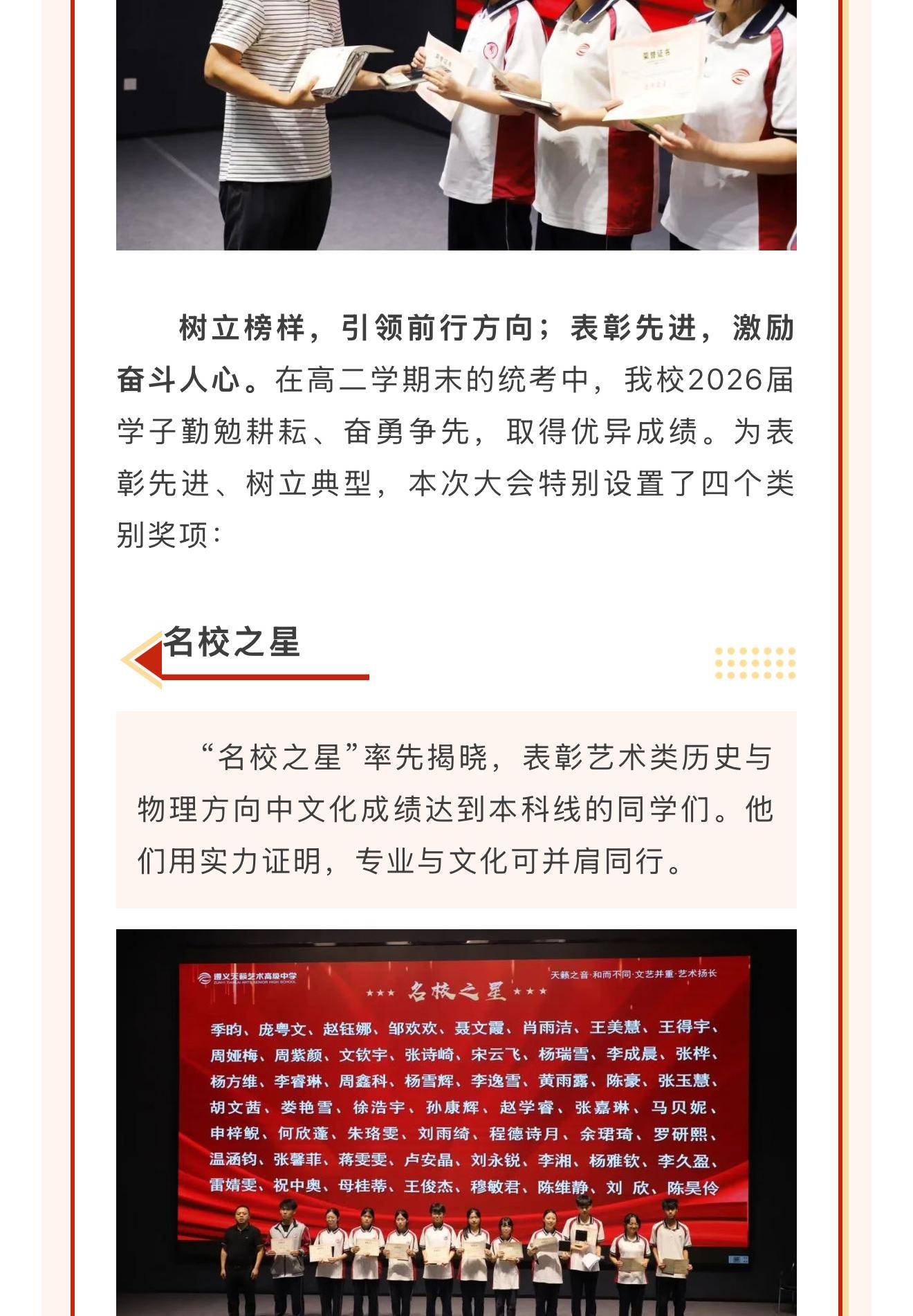 遵义天籁艺术高级中学2025年自主招生入围考生名单公示