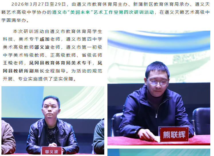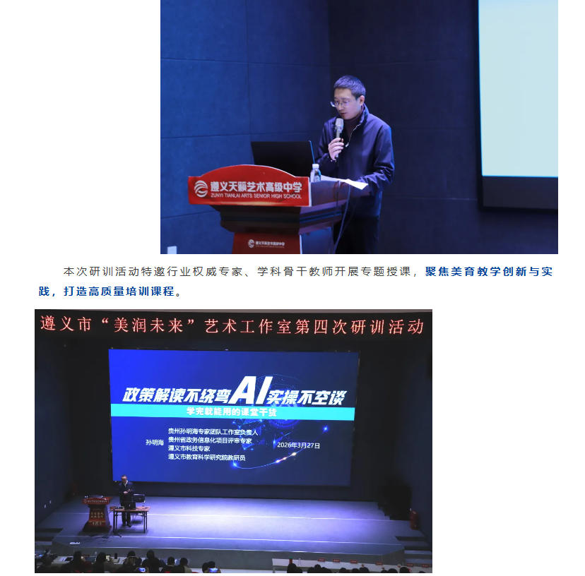 热烈祝贺遵义市“美润未来”艺术工作室第四次研训活动在遵义天籁艺术高级中学顺利举办